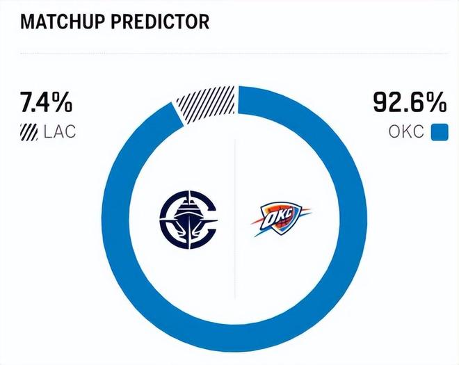 赛前,美媒ESPN对本场比赛进行了胜率预测,雷霆队的胜率高达92.6%,占据绝对上风,快船队胜率则仅有可怜的7.4%,这对比太刺眼了。