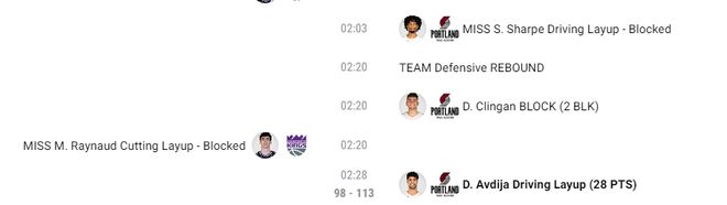 这场比赛有多么戏剧性呢?末节还剩2分28秒阿夫迪亚上篮命中,开拓者113-98领先国王15分之多,关键这是主场啊。