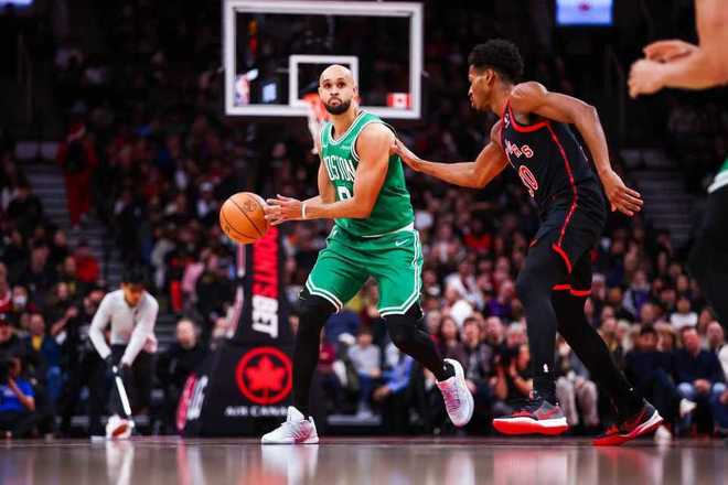 凯尔特人上一场主场129-116战胜热火,猛龙过去两场连续客场战胜热火与雄鹿收获2连胜,本赛季首次交锋凯尔特人客场121-113战胜猛龙。本场凯尔特人缺少塔图姆与布朗,猛龙缺少巴雷特与珀尔特尔。首节开局凯尔特人5-3领先,猛龙一波8-0攻势反超6分,普里查德引领7-2攻势追分。凯尔特人在16-20落后情况下,打出一波梦幻16-0攻势,首节结束凯尔特人32-20领先猛龙12分优势。凯尔特人首节26中12,其中三分9中4,普里查德8+3+4与怀特6中1仅得到3分;猛龙26中8,其中三分16中4。